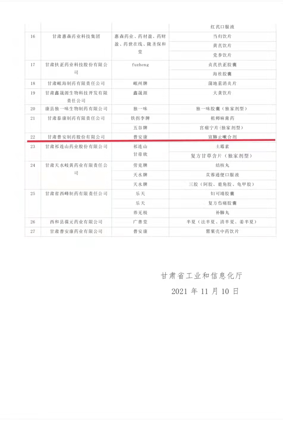 喜報(bào)!喜報(bào)!宣肺止嗽合劑進(jìn)入隴藥大品種大品牌培育目錄(2021版)