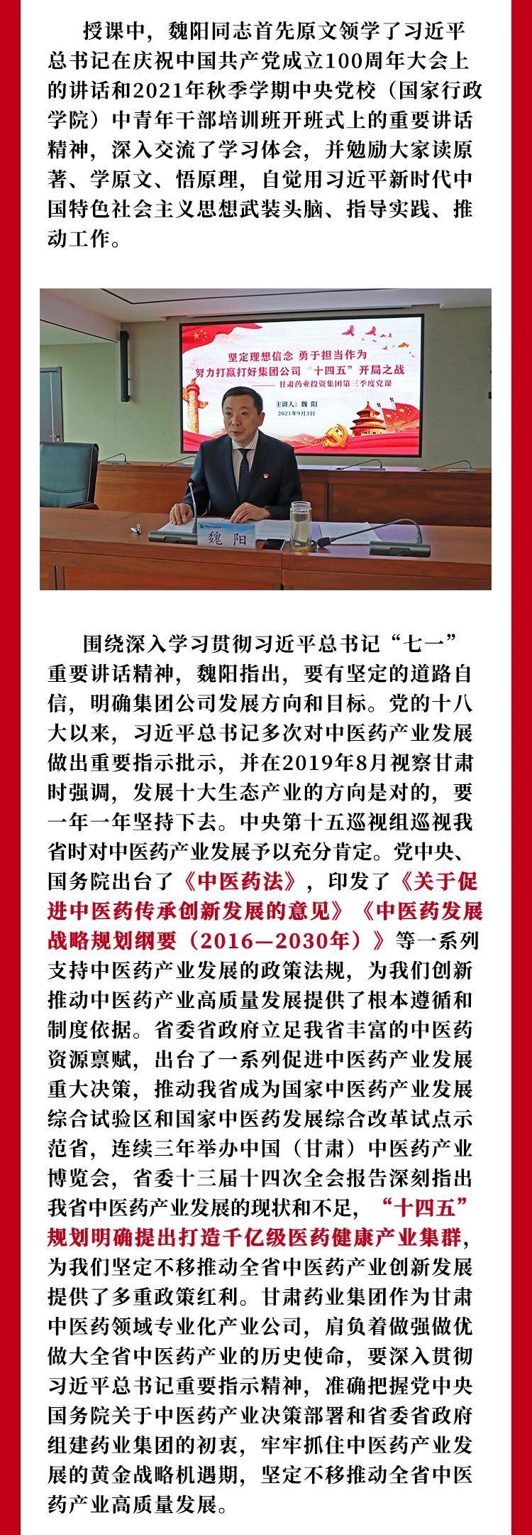 堅(jiān)定理想信念 勇于擔(dān)當(dāng)作為 努力打贏打好集團(tuán)公司“十四五”開(kāi)局之戰(zhàn) ——甘肅藥業(yè)投資集團(tuán)第三季度黨課