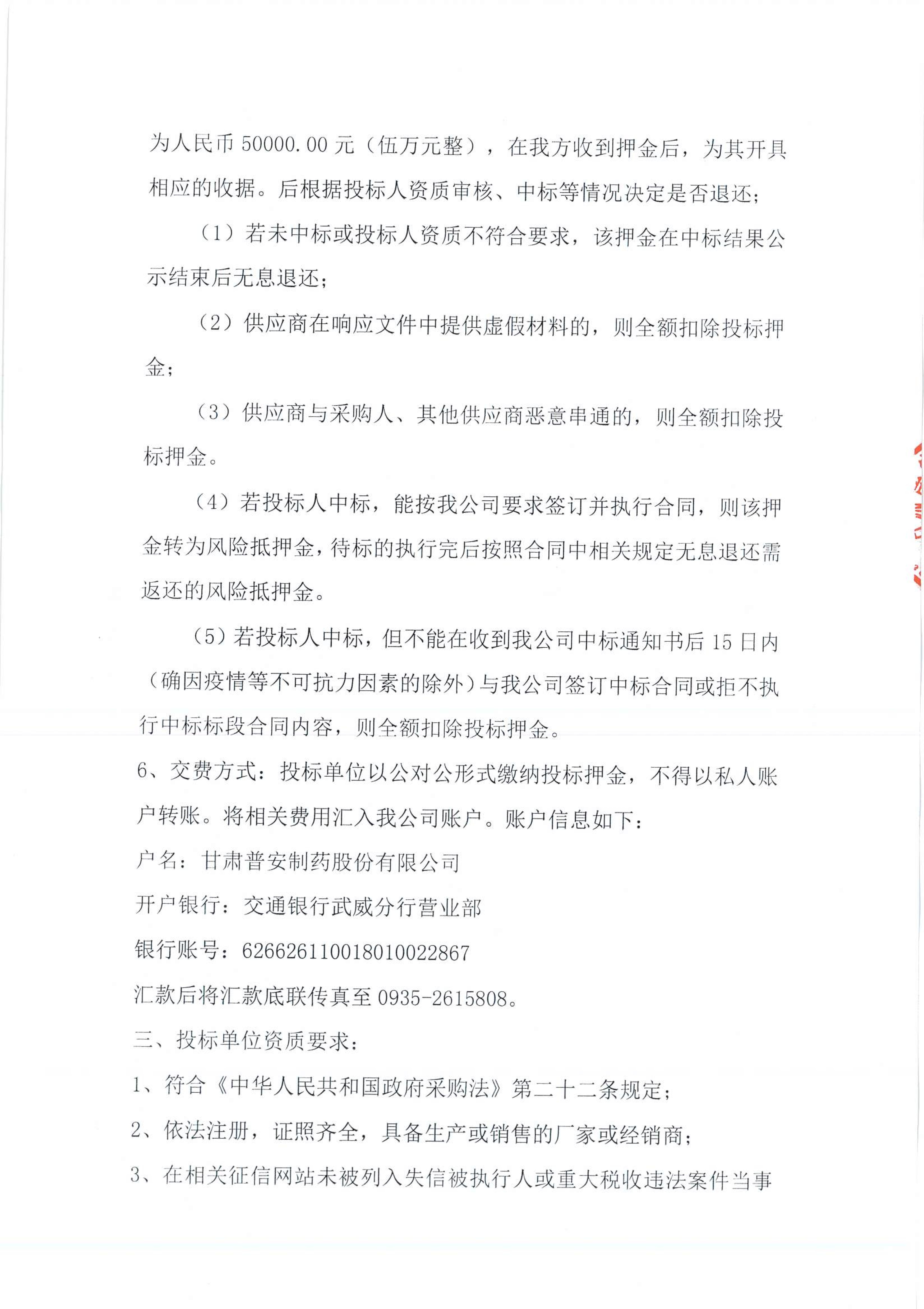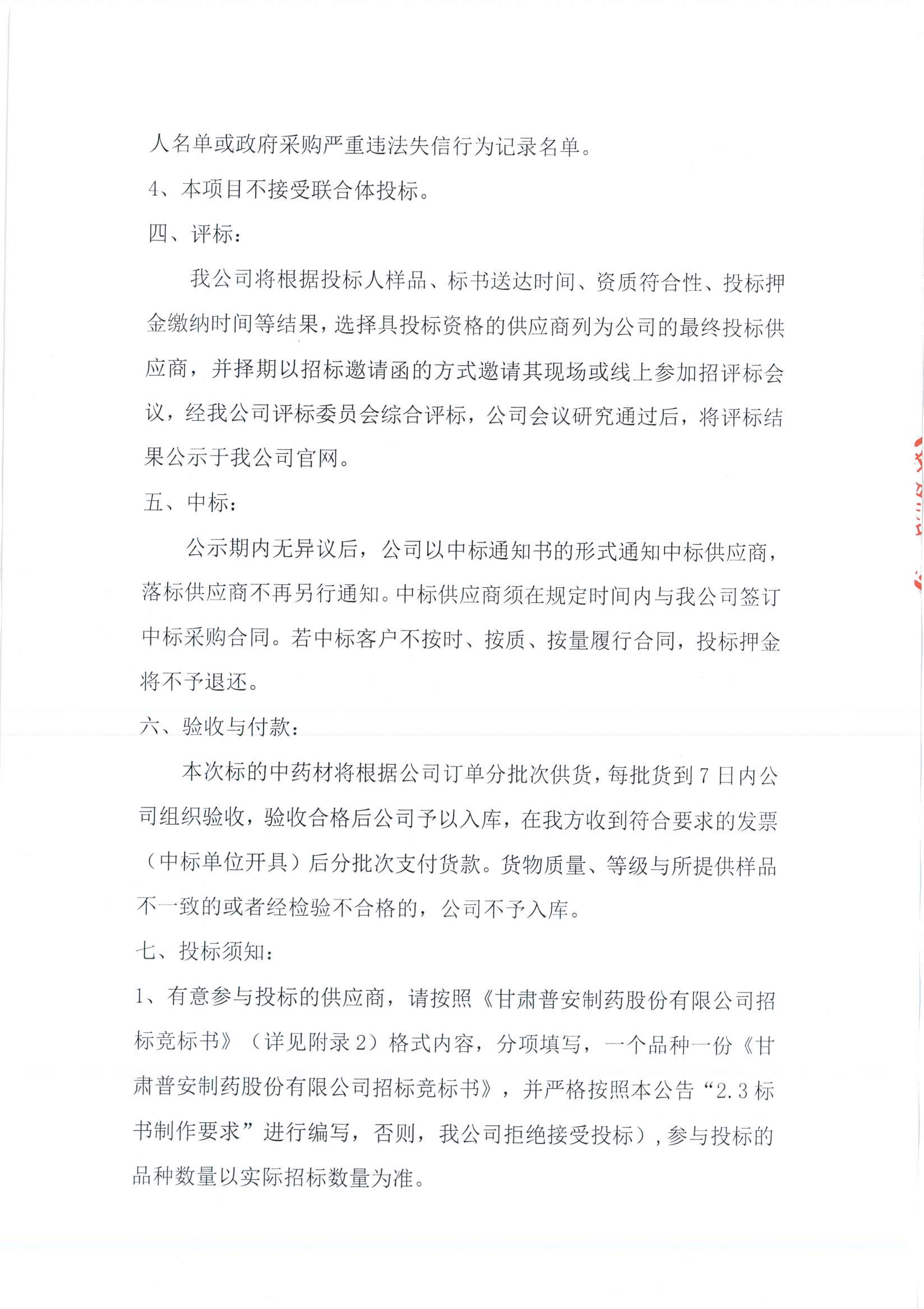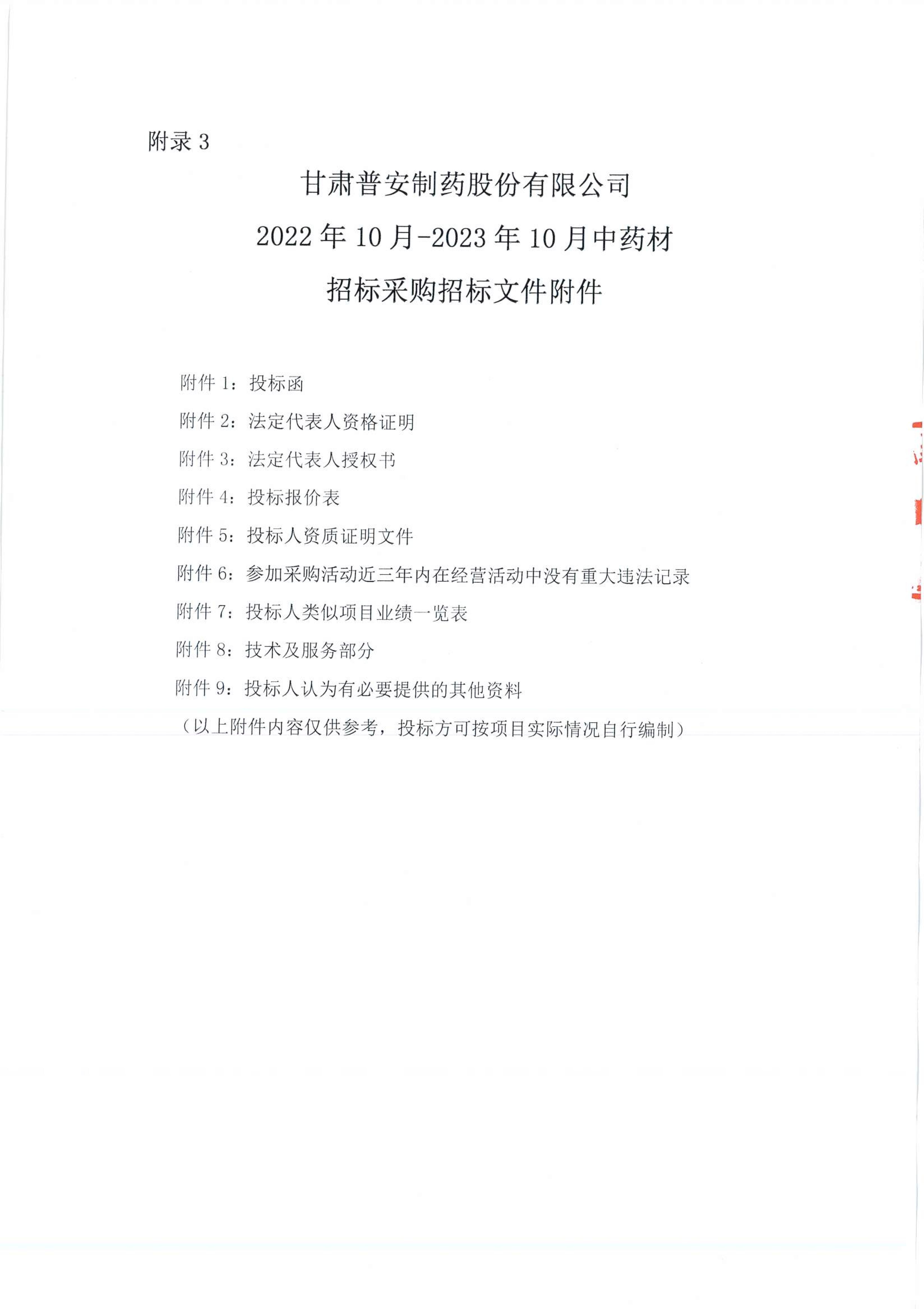 甘肅普安制藥股份有限公司2022年10月-2023年10月中藥材招標(biāo)采購公告