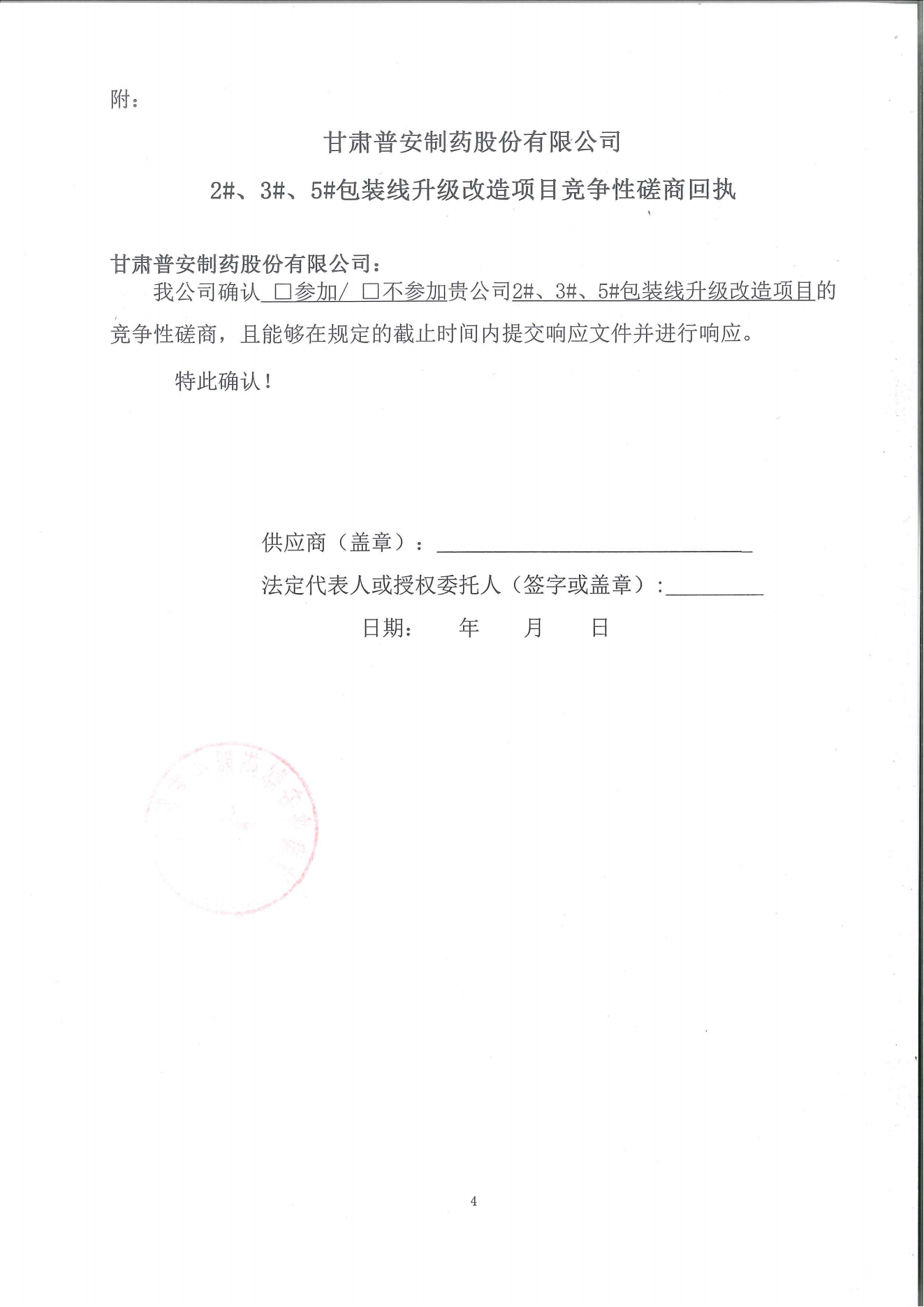 甘肅普安制藥股份有限公司 2#、3#、5#包裝線升級(jí)改造項(xiàng)目競(jìng)爭(zhēng)性磋商公告