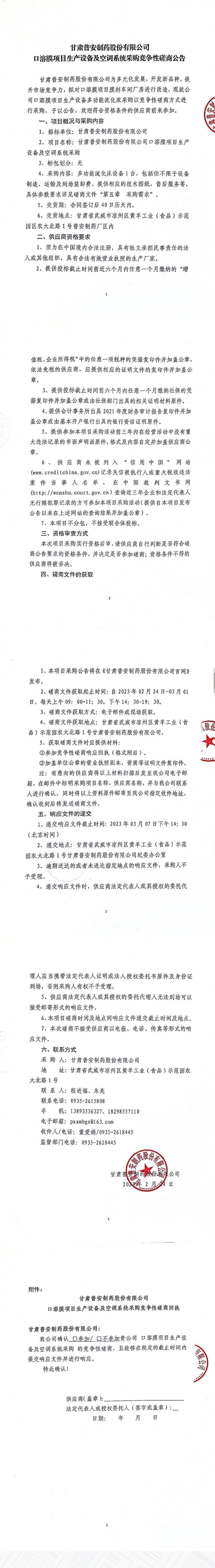 甘肅普安制藥股份有限公司口溶膜項目生產(chǎn)設(shè)備及空調(diào)系統(tǒng)采購競爭性磋商公告