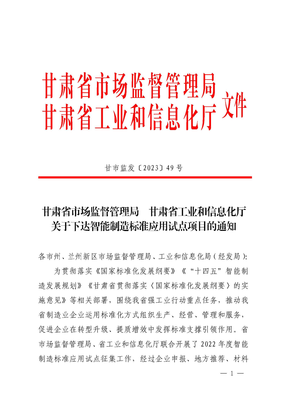 近日,甘肅省市場監(jiān)督管理局、甘肅省工業(yè)和信息化廳公布了省級智能制造標(biāo)準(zhǔn)應(yīng)用試點(diǎn)項目名單。
