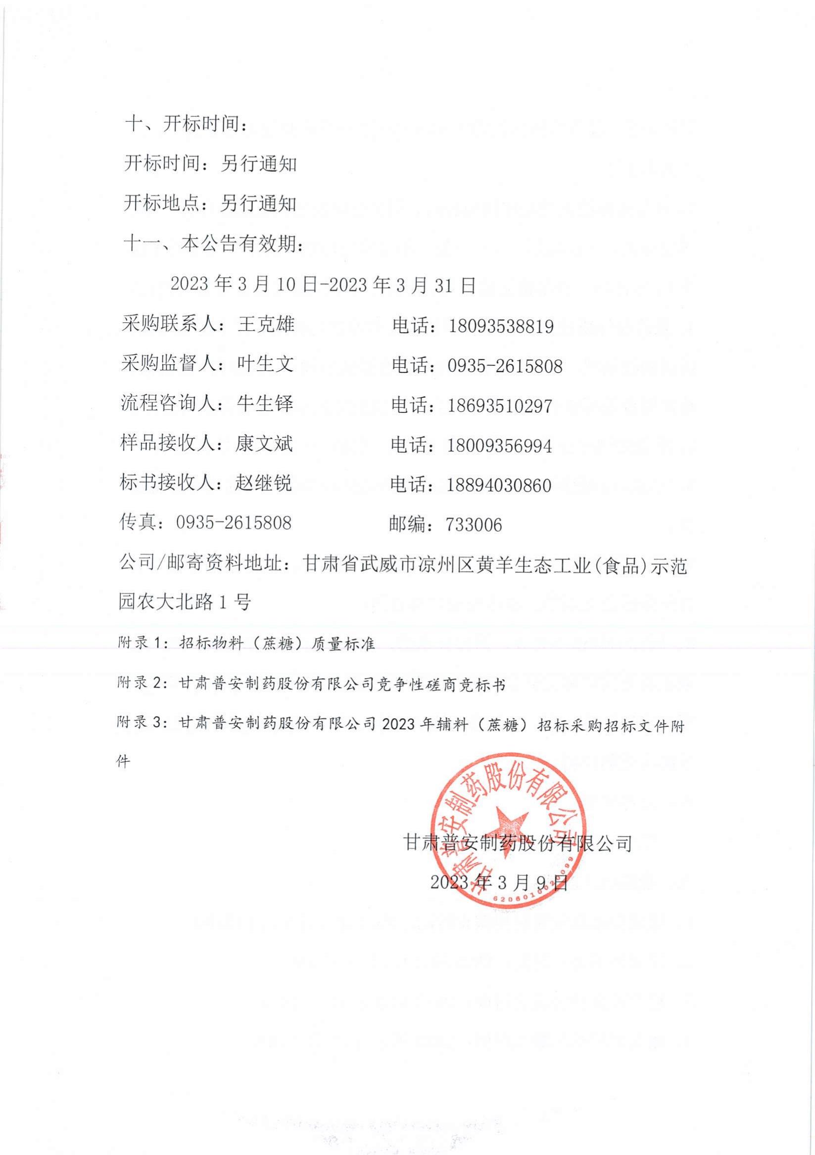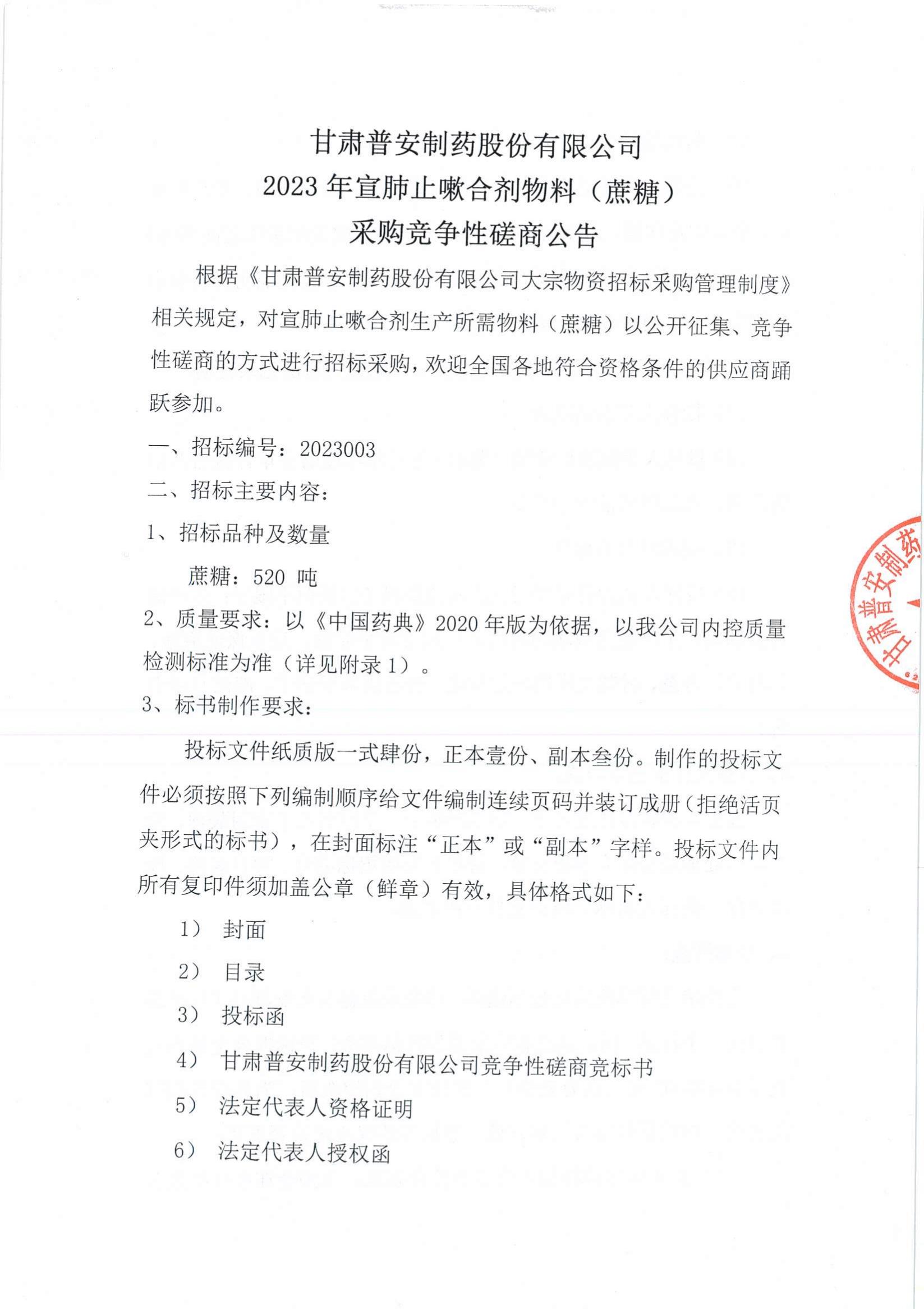 具體內(nèi)容詳見附件:甘肅普安制藥股份有限公司2023年宣肺止嗽合劑物料(蔗糖)采購(gòu)競(jìng)爭(zhēng)性磋商公告