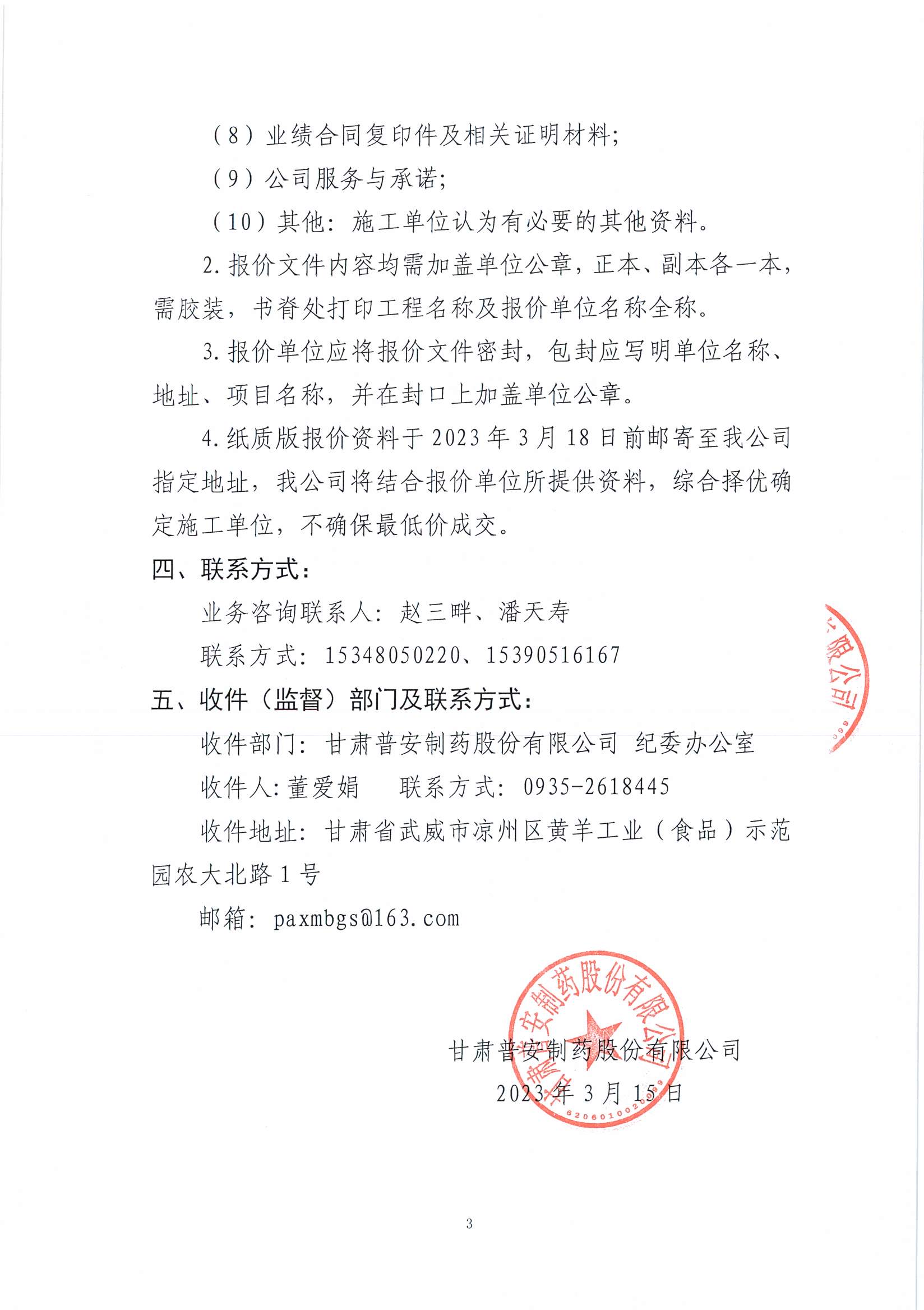 甘肅普安制藥股份有限公司原地下酒精庫(kù)拆除報(bào)價(jià)邀請(qǐng)公告