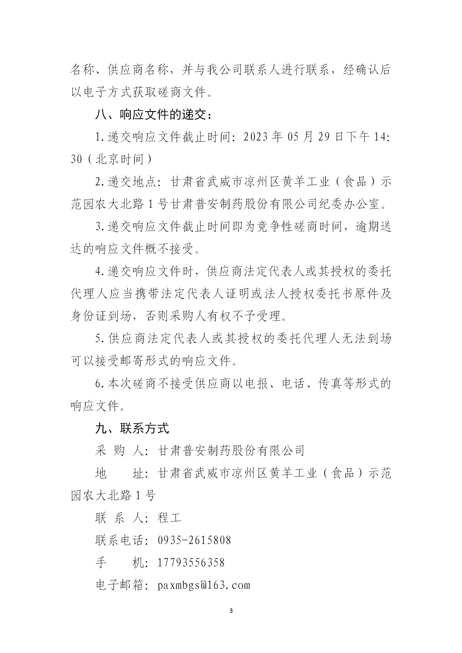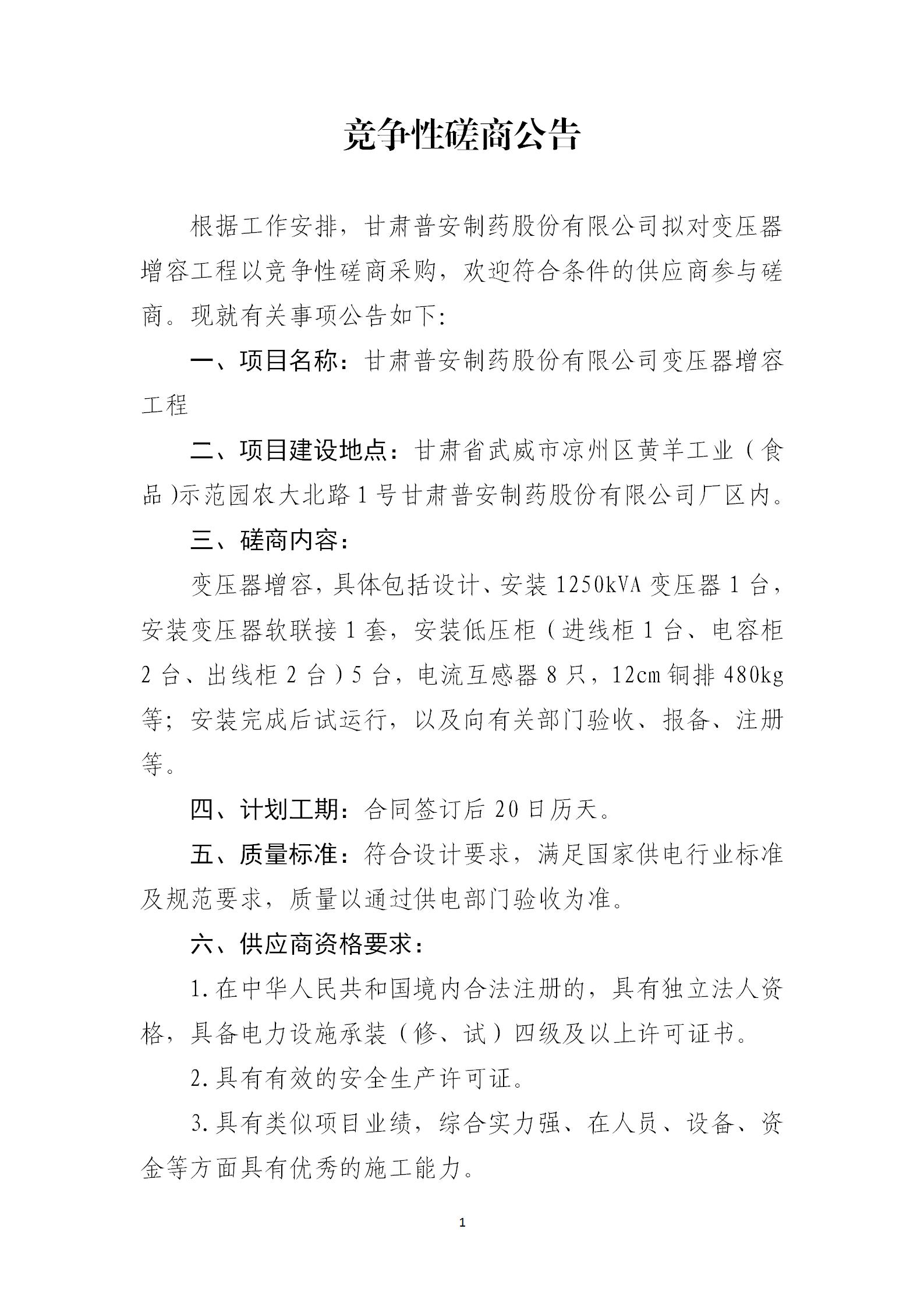 甘肅普安制藥股份有限公司變壓器增容工程競爭性磋商公告