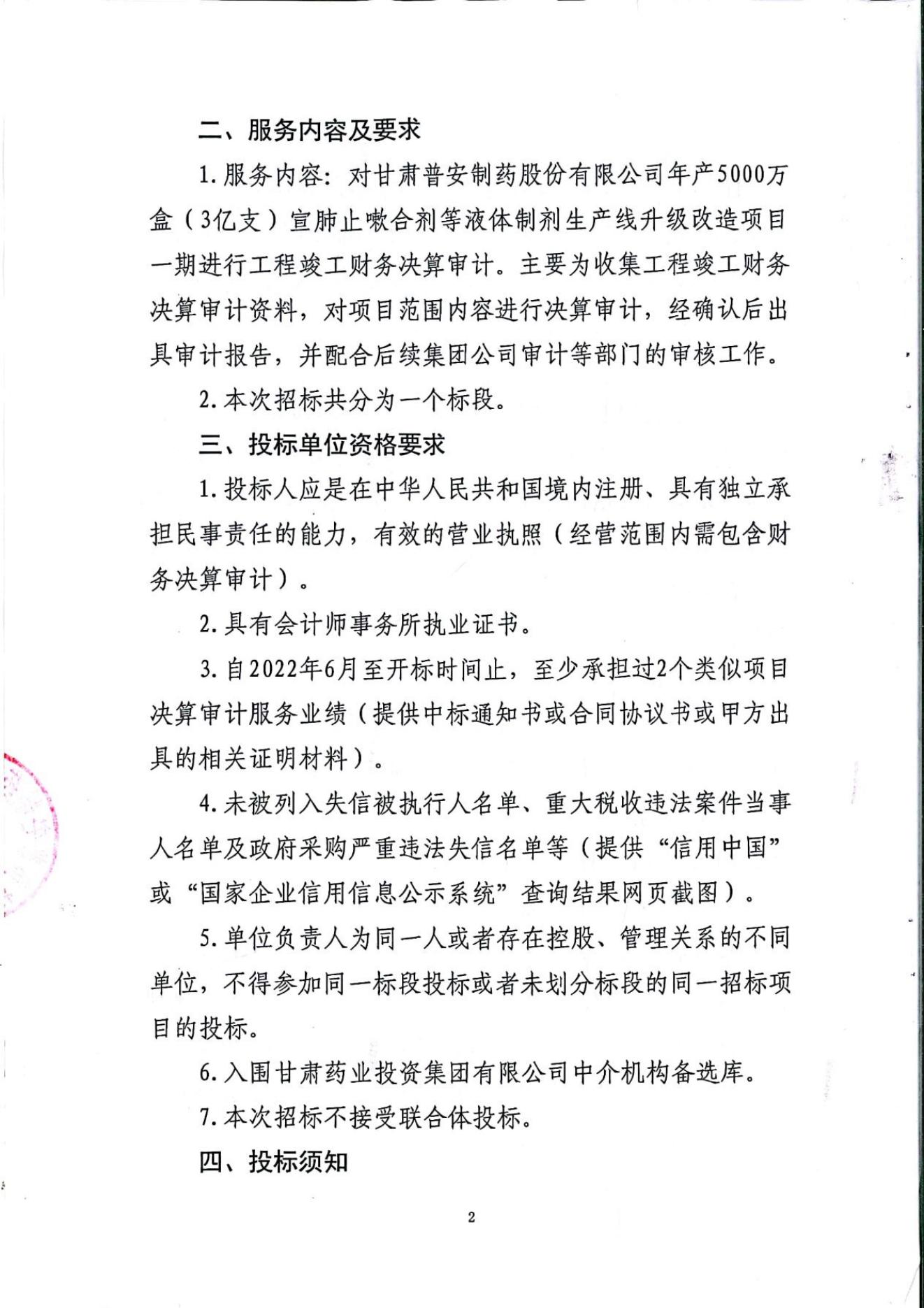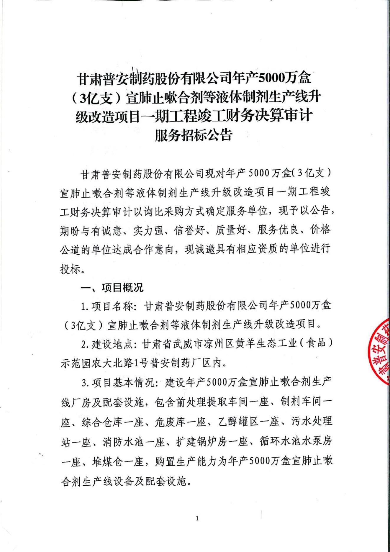 普安制藥年產(chǎn)5000萬盒宣肺止嗽合劑等液體制劑生產(chǎn)線升級(jí)改造項(xiàng)目一期竣工決算審計(jì)服務(wù)招標(biāo)公告