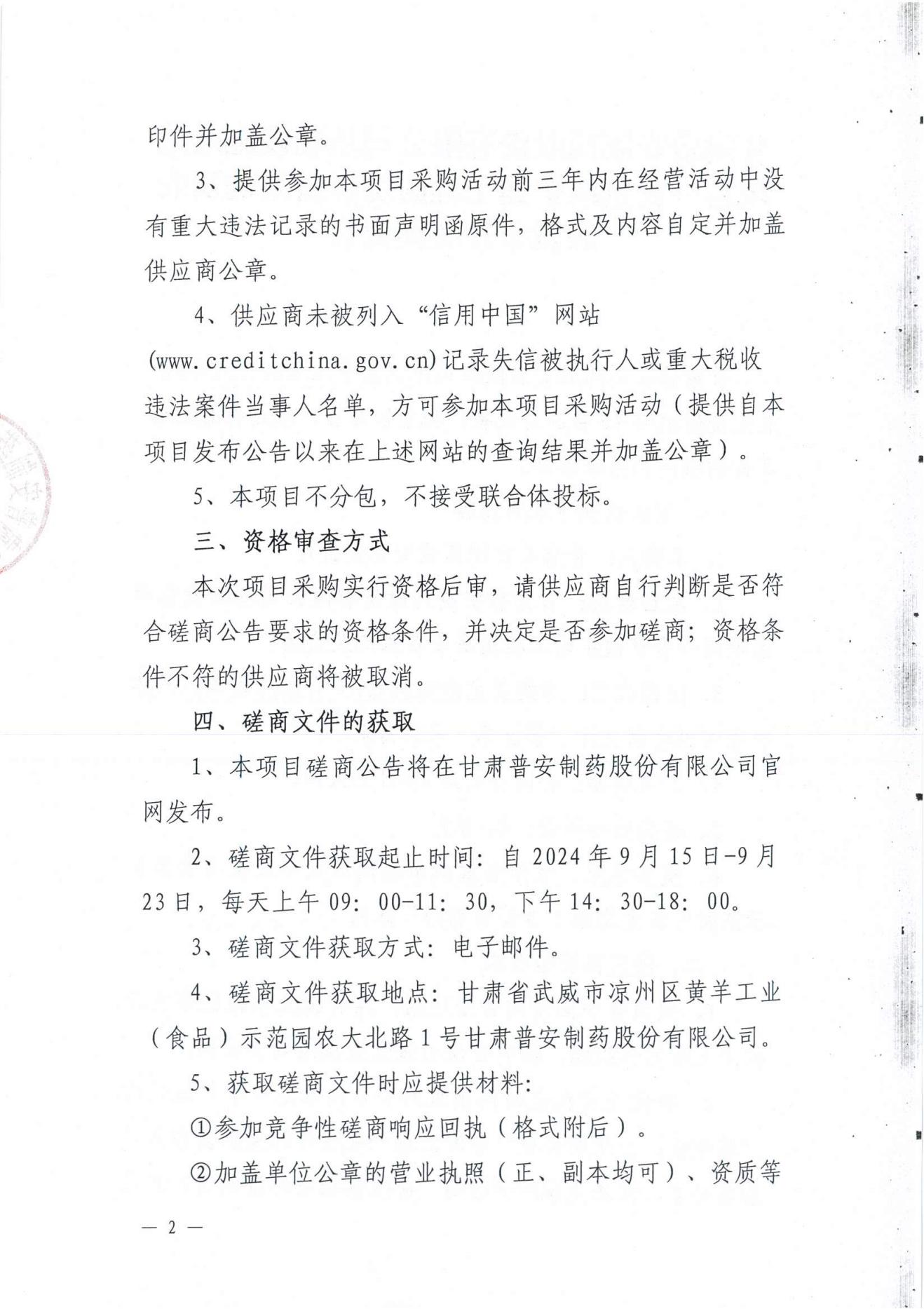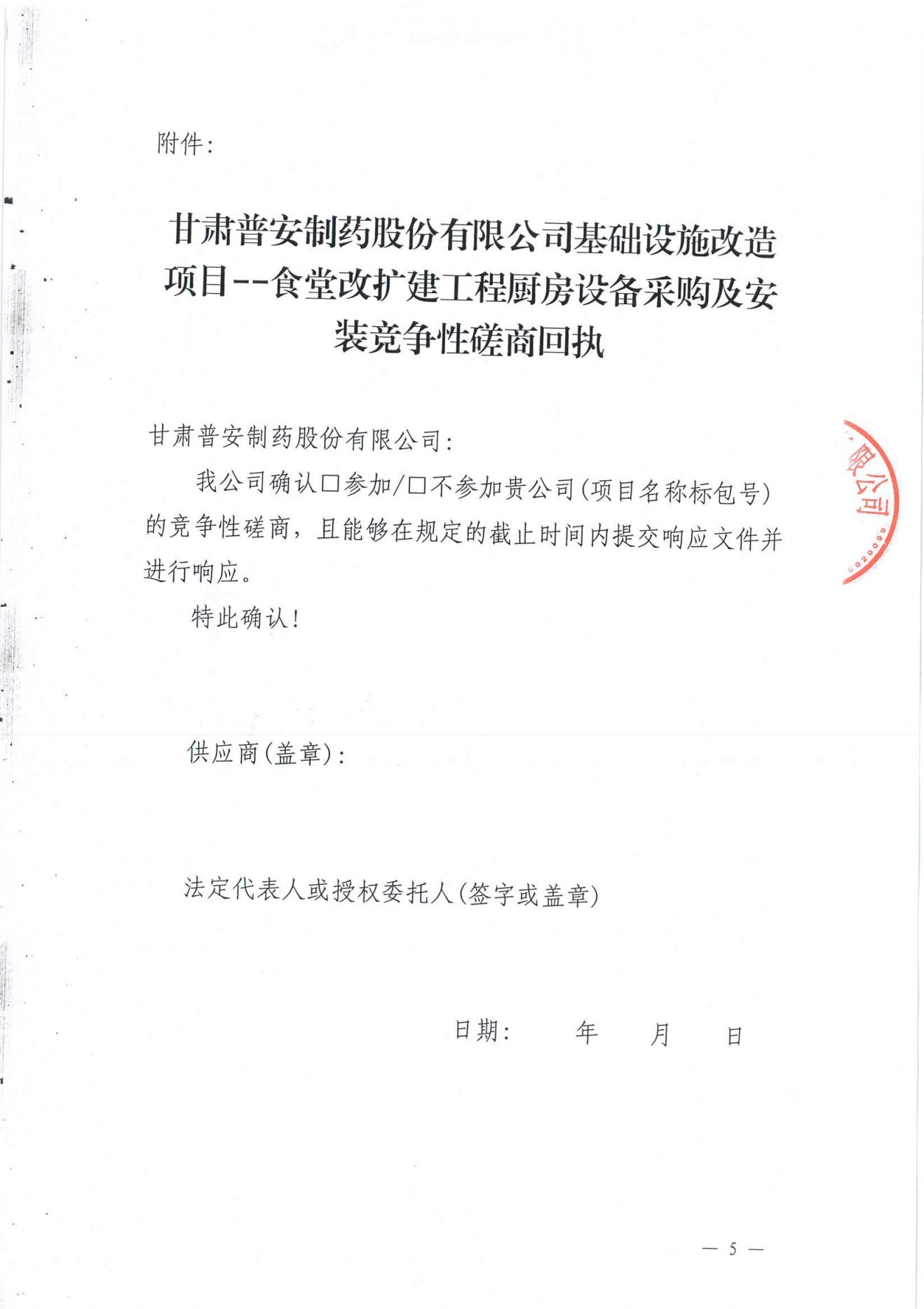甘肅普安制藥股份有限公司基礎(chǔ)設(shè)施改造項目--食堂改擴(kuò)建工程廚房設(shè)備采購及安裝競爭性磋商公告